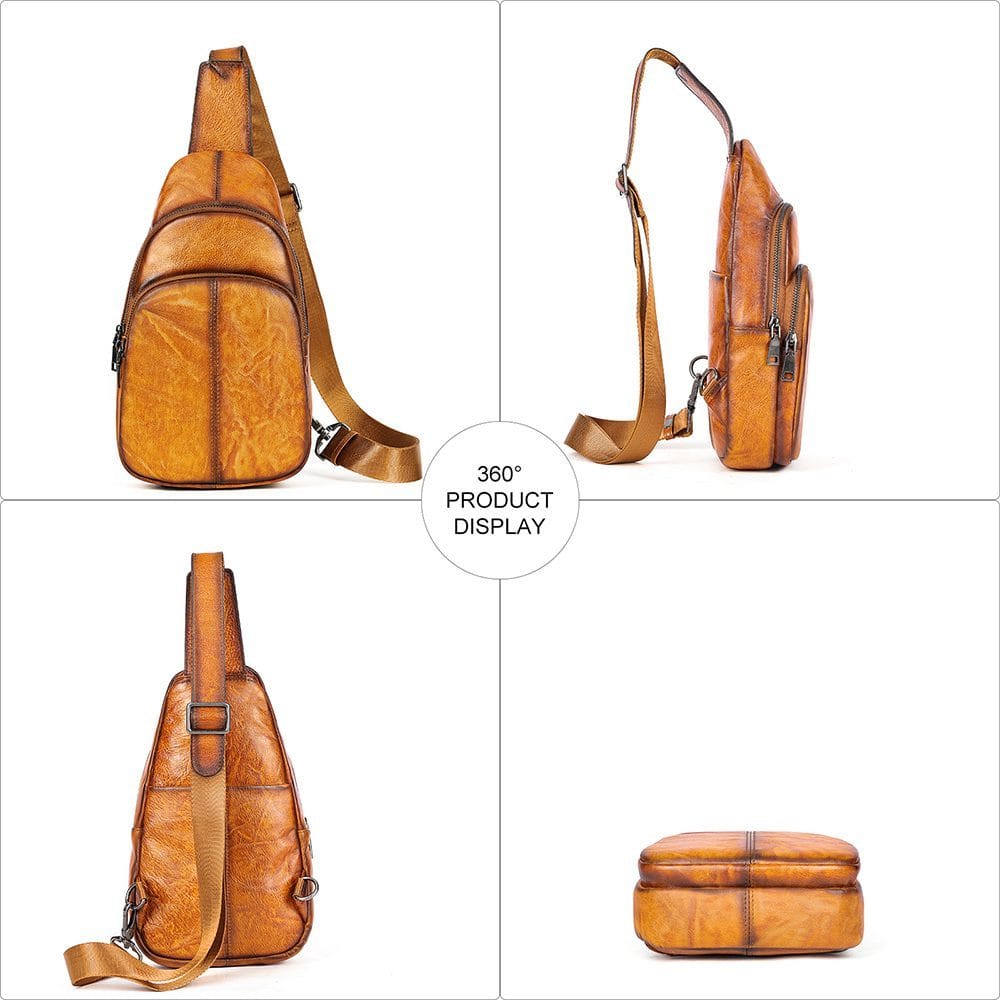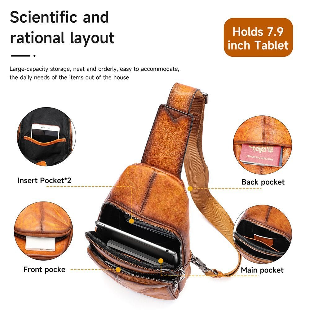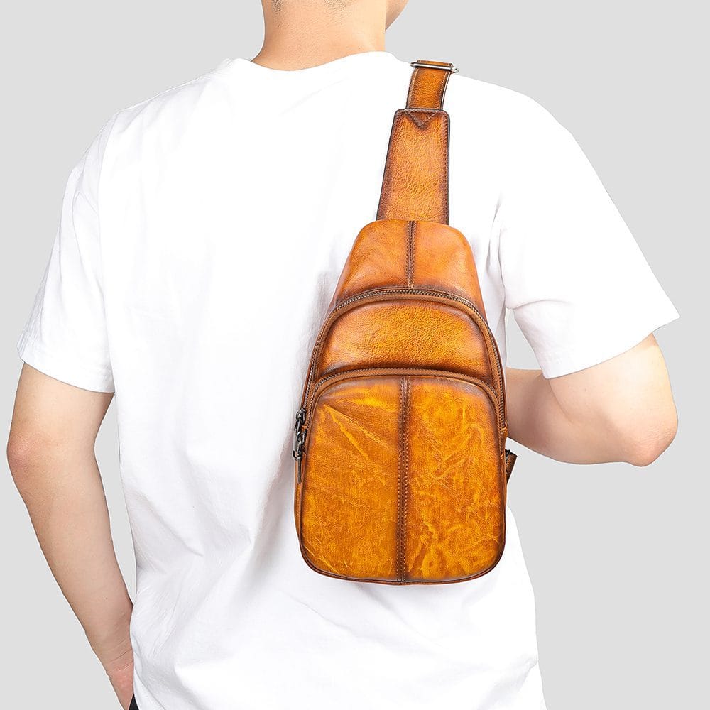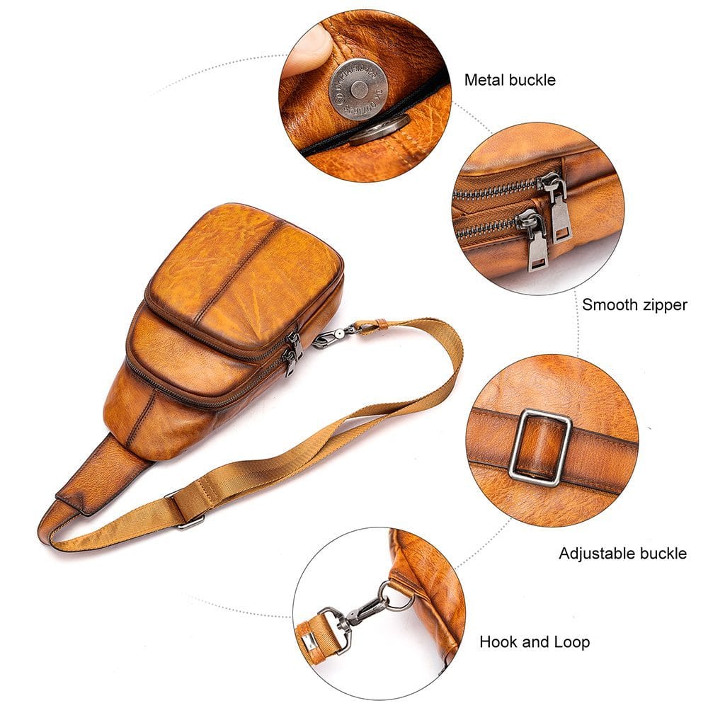 Full Grain Cowhide Leather Crossbody Sling Chest Pack One Shoulder Bag Article: SCB-ML023