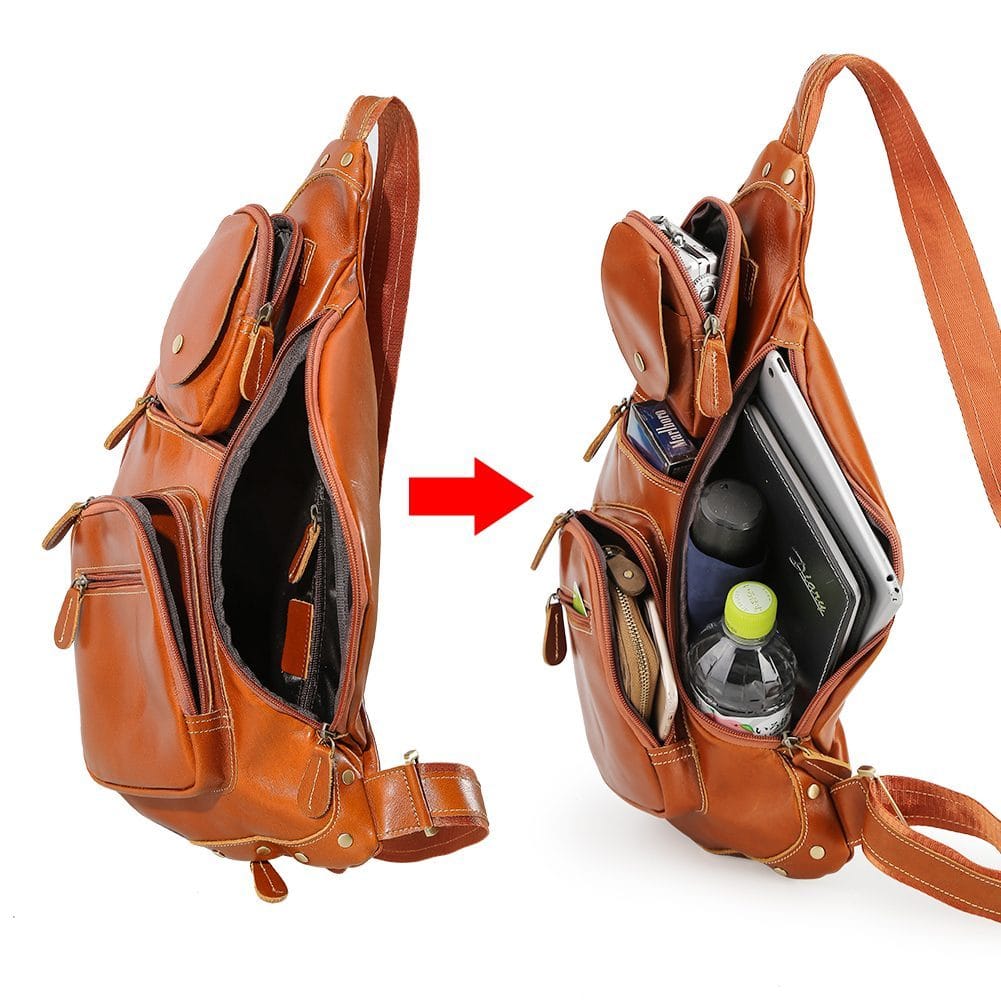 Full Grain Cowhide Leather Crossbody Sling Chest Pack One Shoulder Bag Article: SCB-ML035