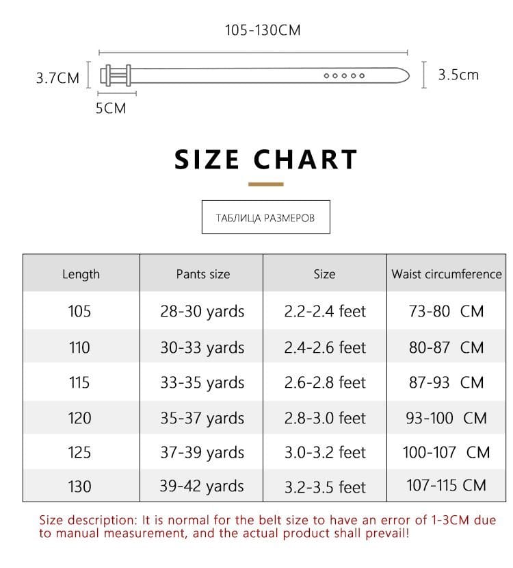| Dimensions | Size L105-130 | Width 3.5 cm |