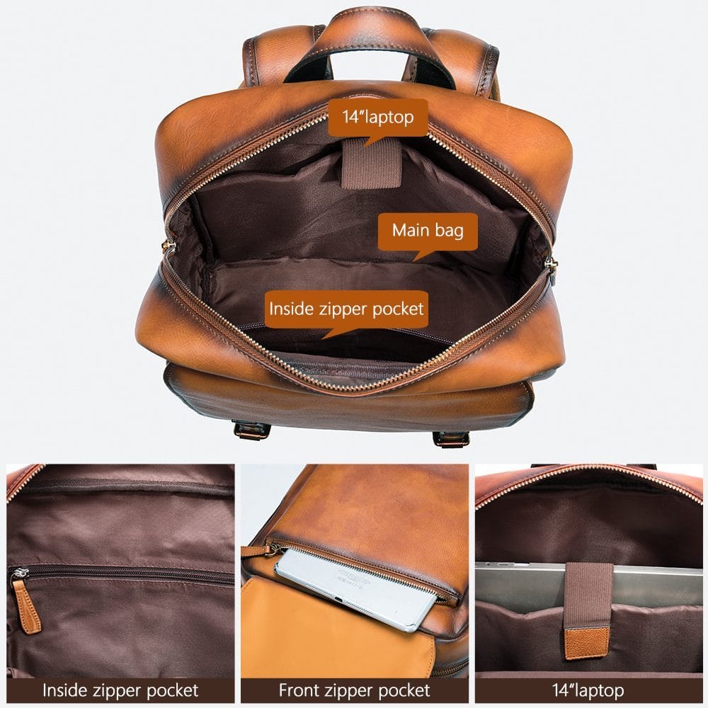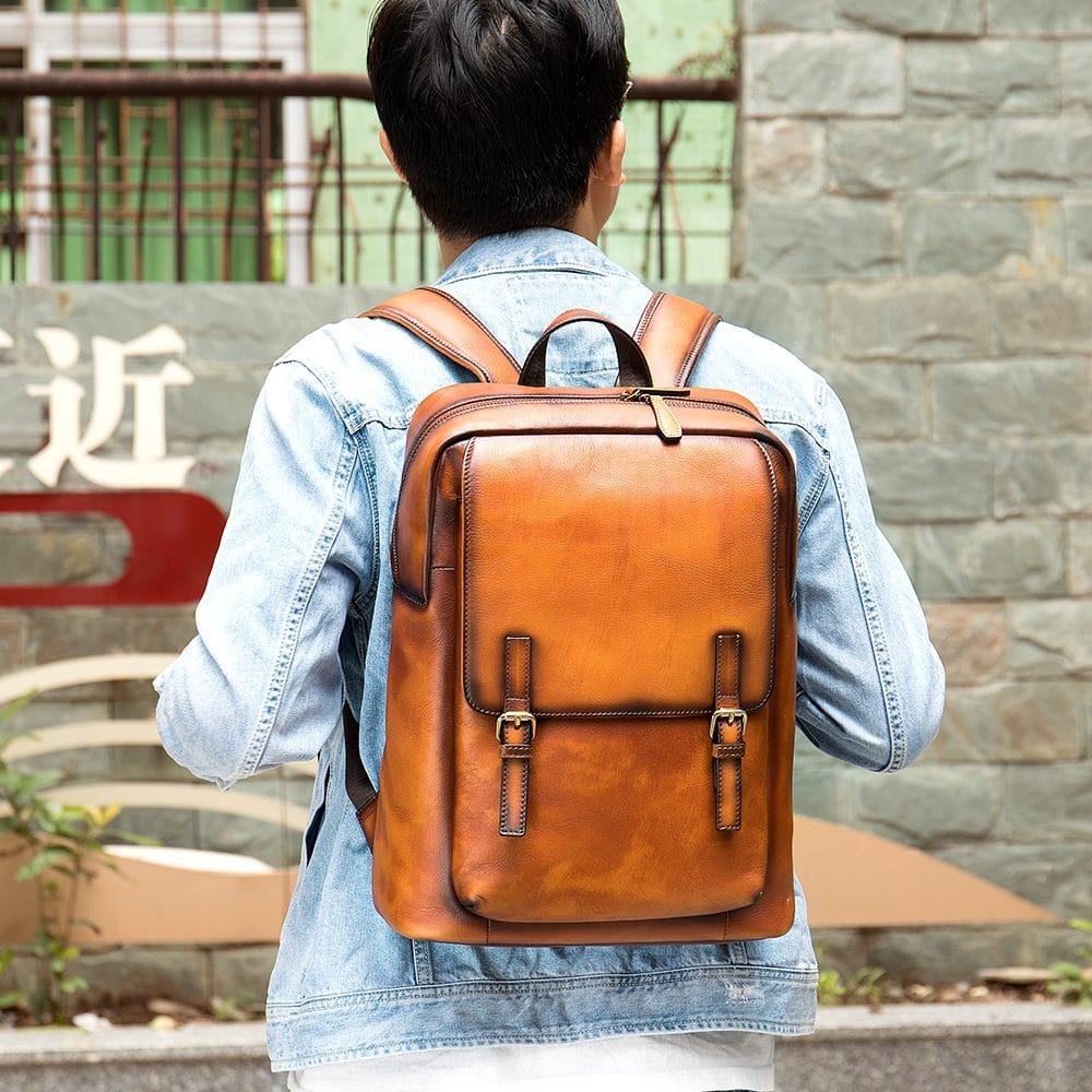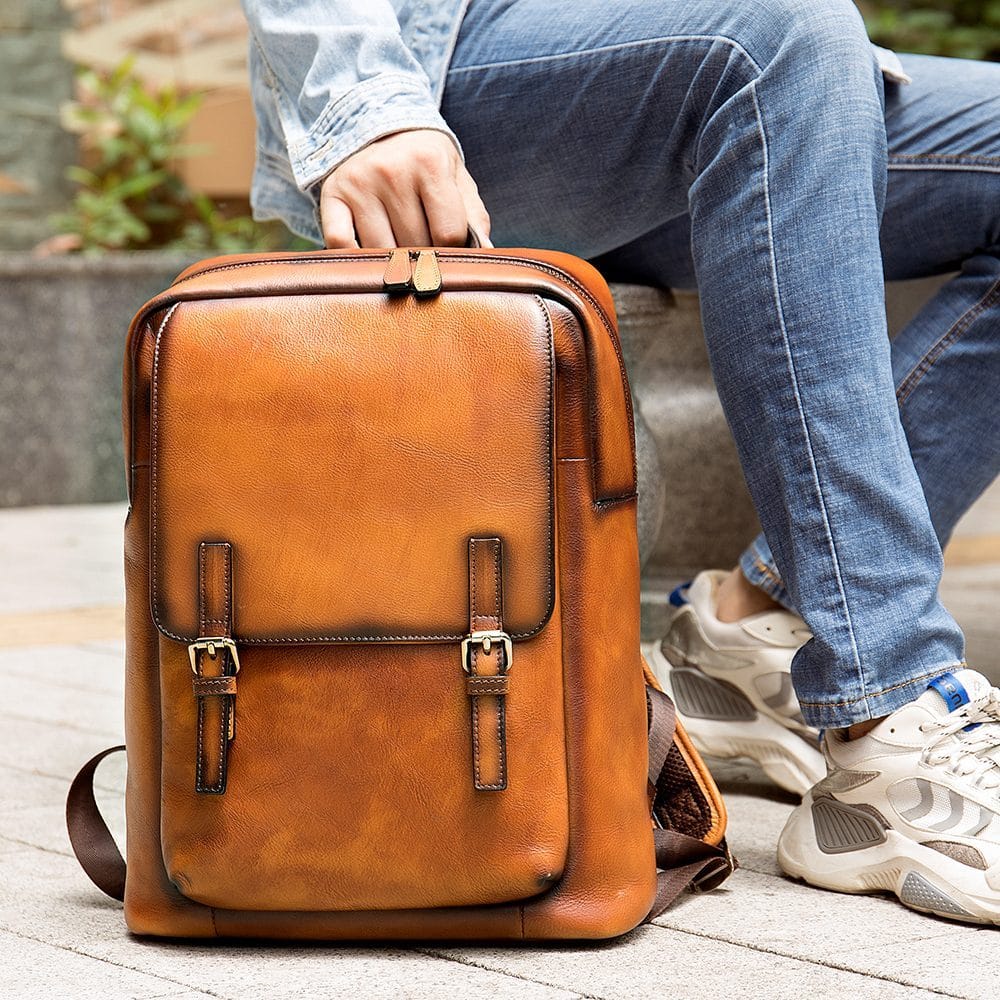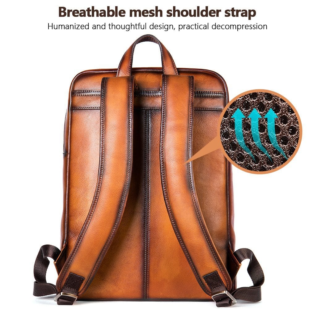 High Quality Mens Full Grain Cowhide Leather Vintage Office Laptop College Backpack Article: BPK-FL0018