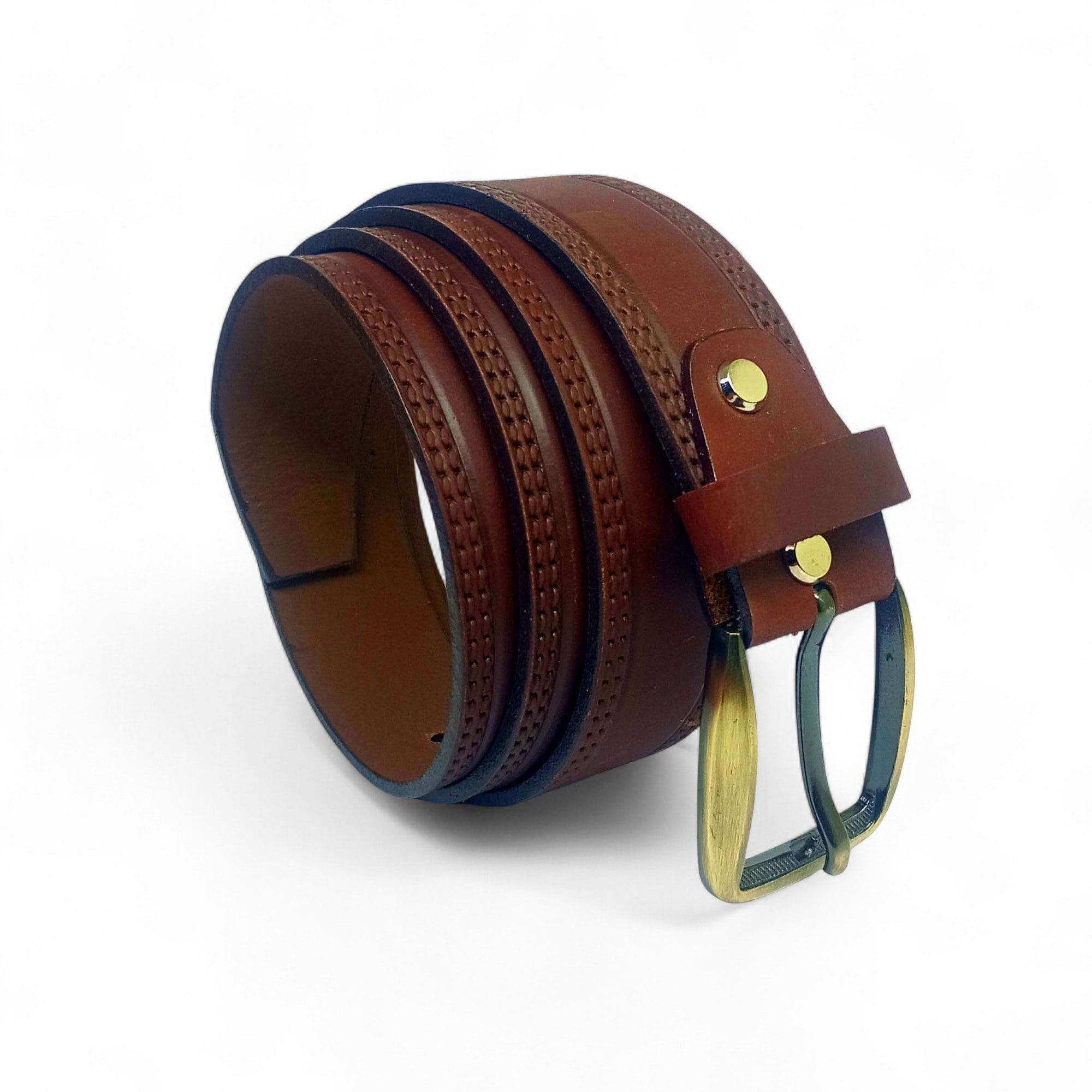 Be the first to review “Men’s Classic Brown Leather Belt with Antique Gold Buckle – LB-304”