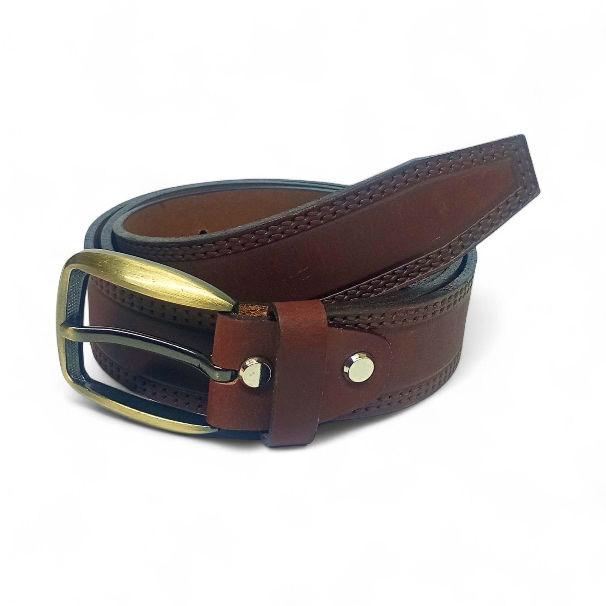 Elevate your wardrobe with the LB-304 Classic Brown Leather Belt, featuring a smooth leather finish, refined dual stitching, and a vintage-inspired gold buckle. This belt offers a perfect balance of durability and distinguished style for your everyday formal or semi-casual wear.