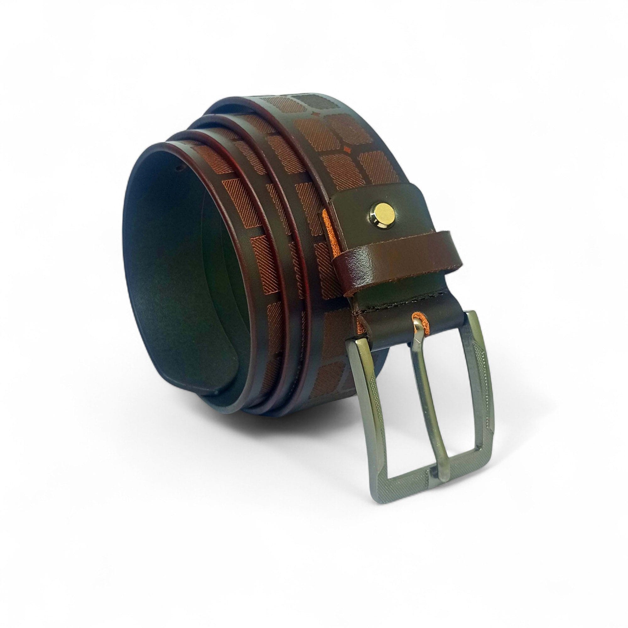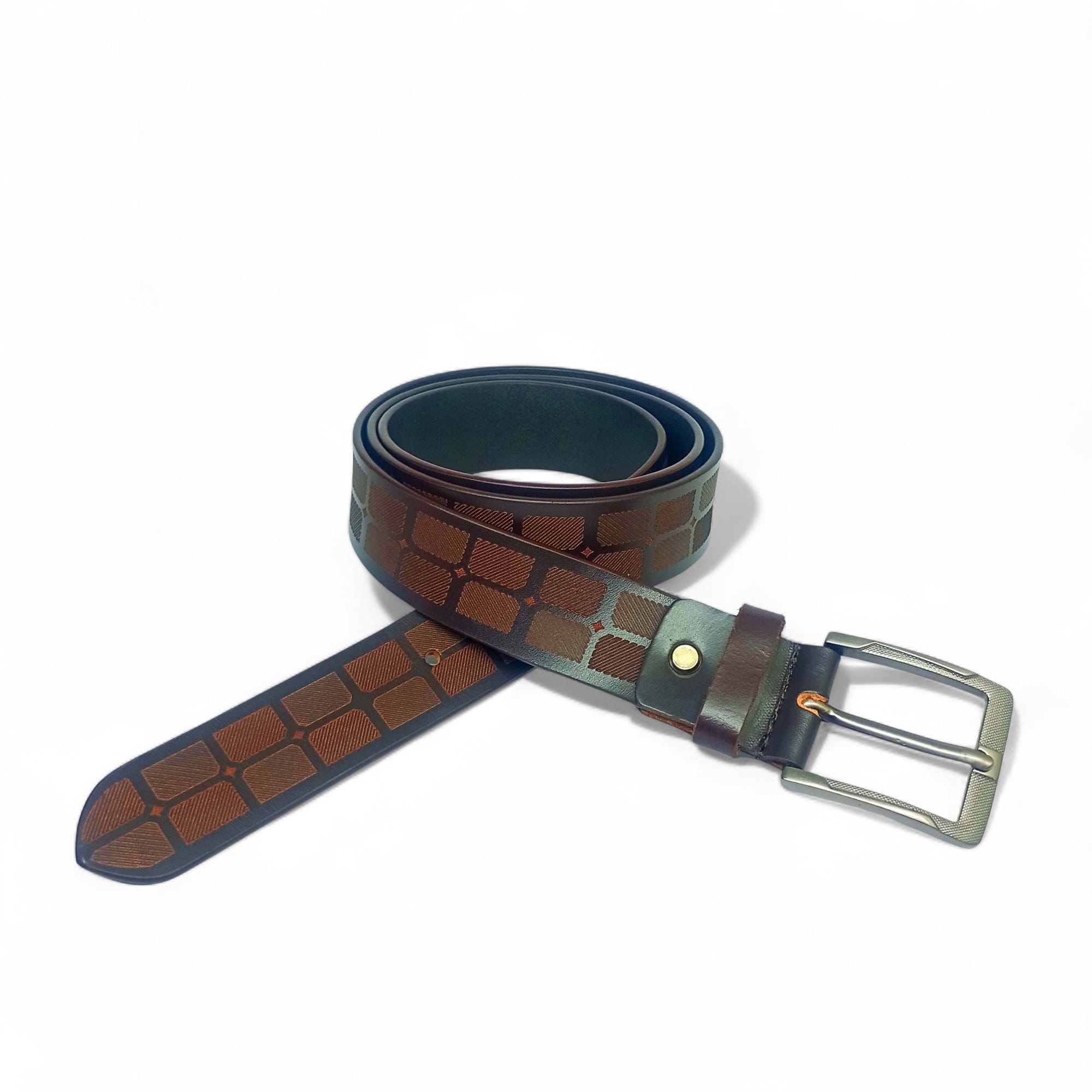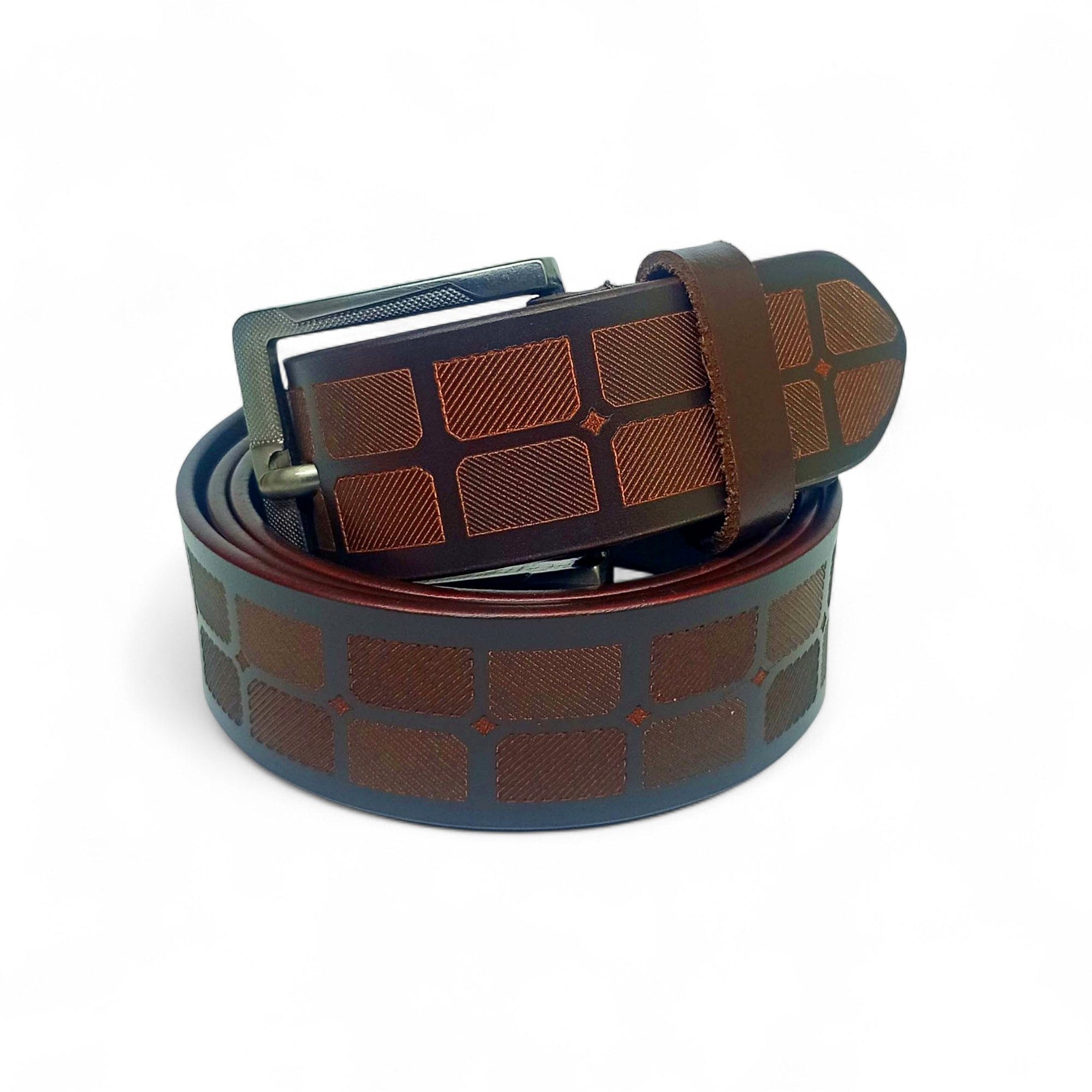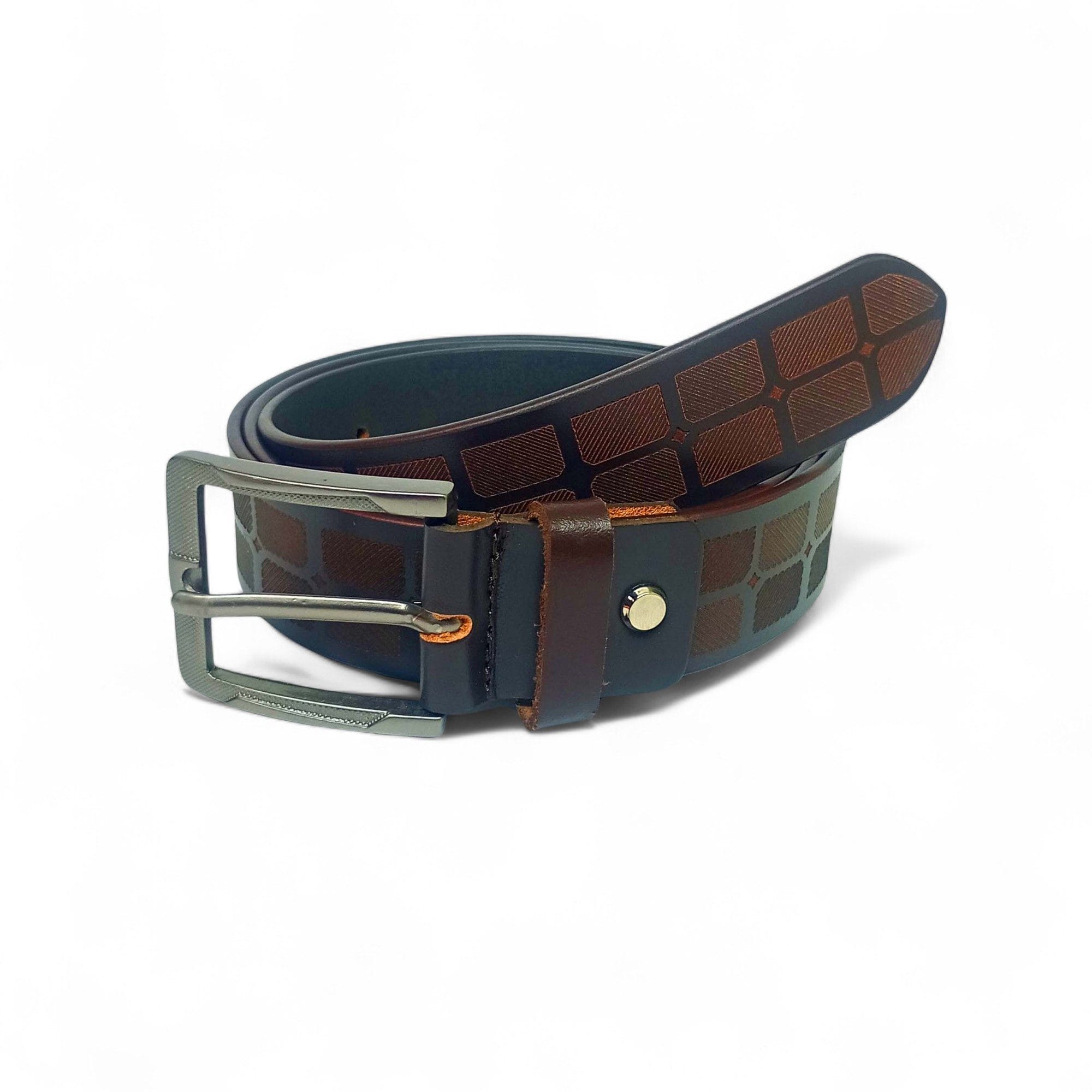 Men’s Designer Brown Leather Belt with Geometric Pattern – LB-406