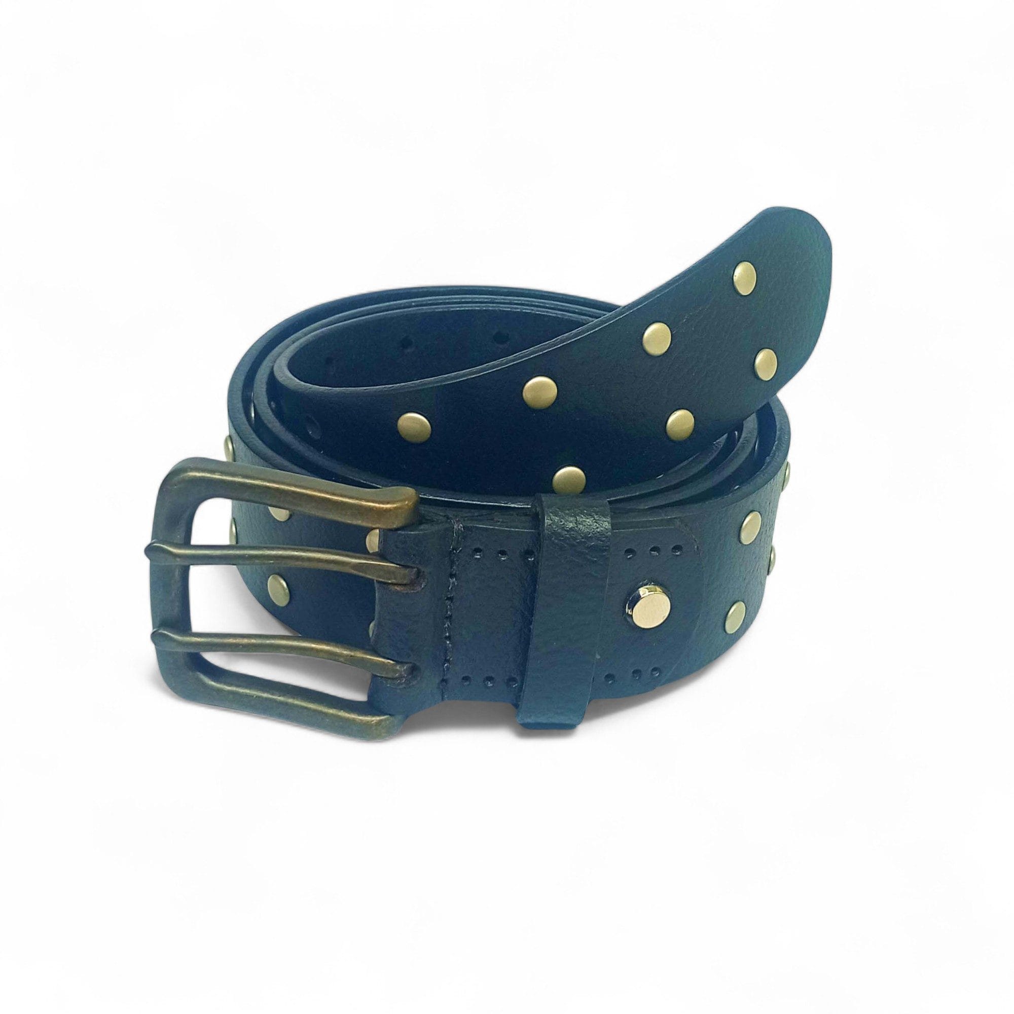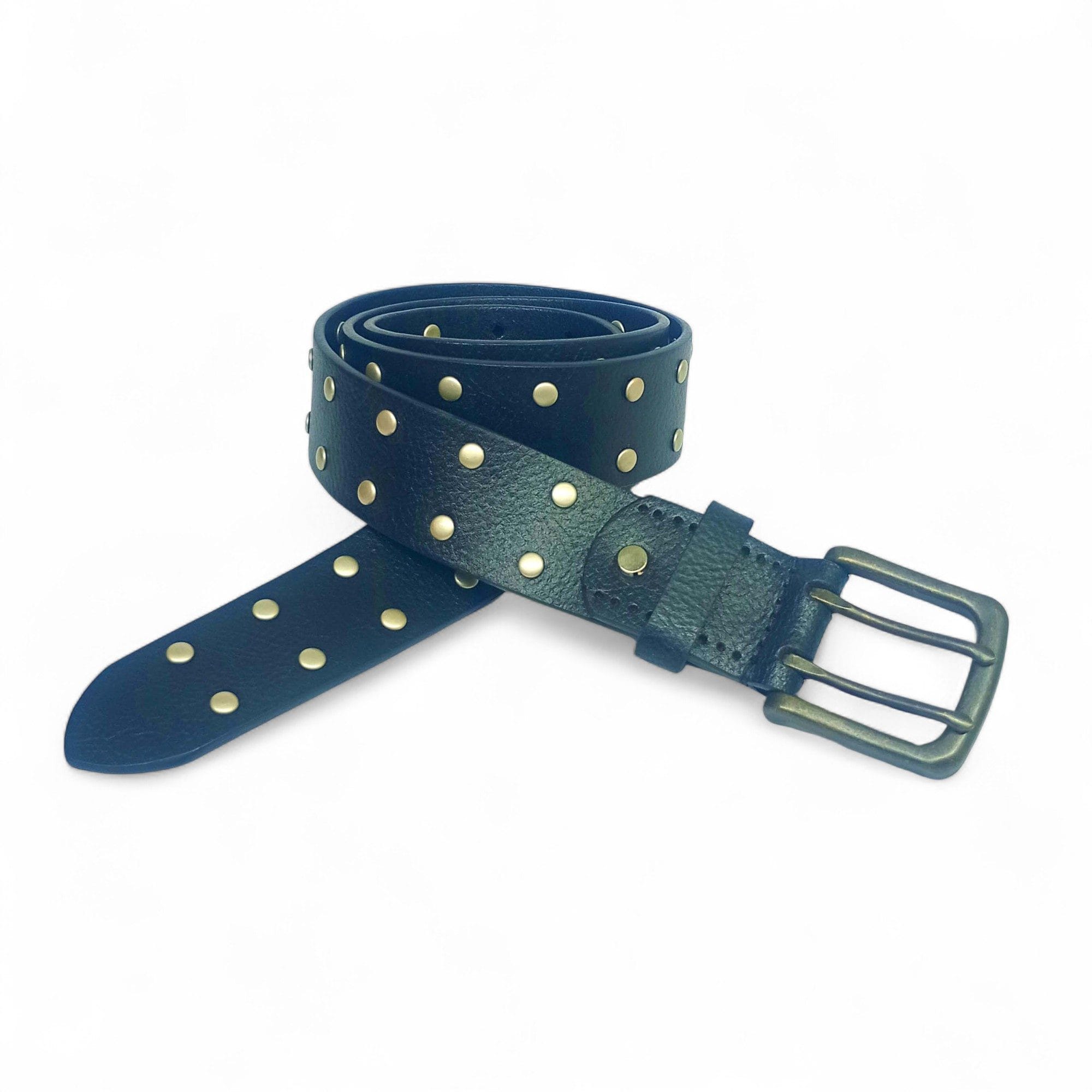 Unleash your bold side with the LB-412 Studded Black Leather Belt. Designed for those who dare to stand out, this belt features gold-toned metal studs that exude confidence and a rugged edge. Paired with an antique brass buckle, it’s a timeless accessory for casual and party looks.