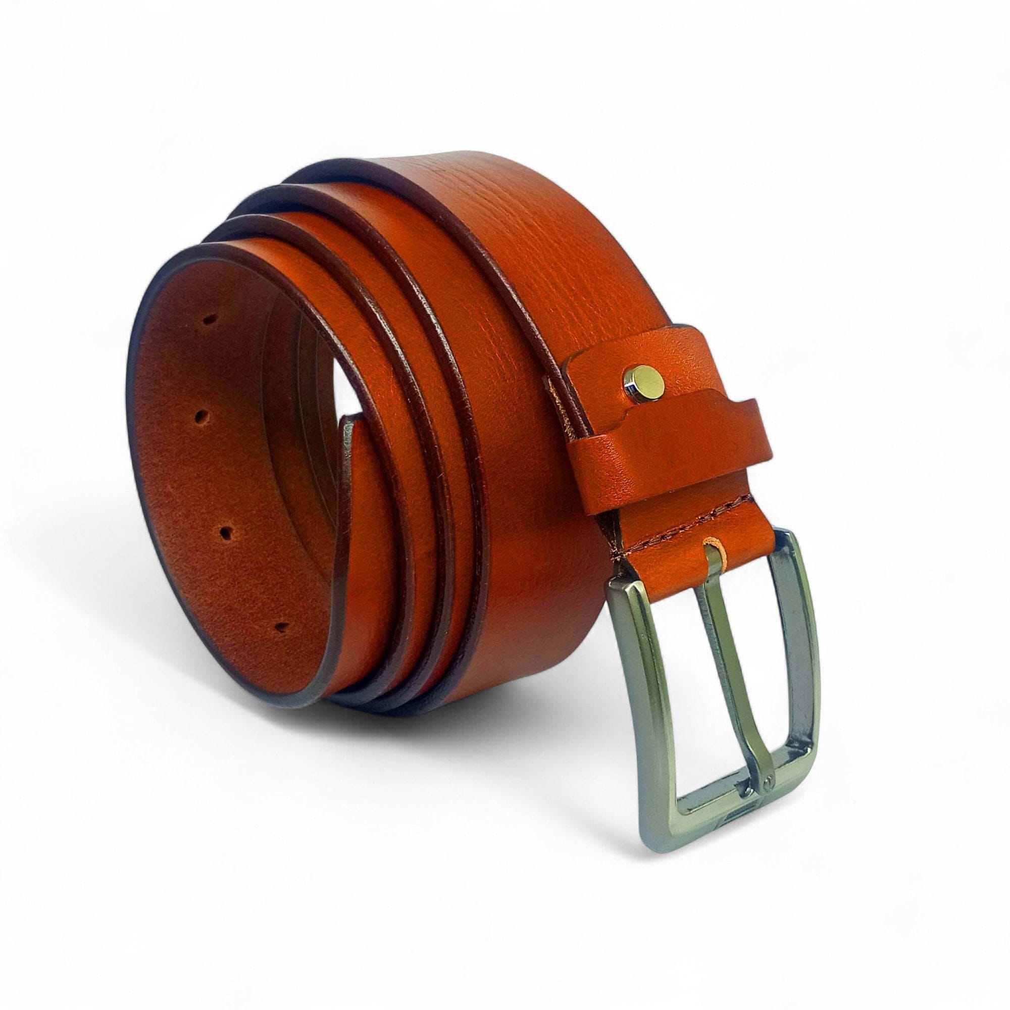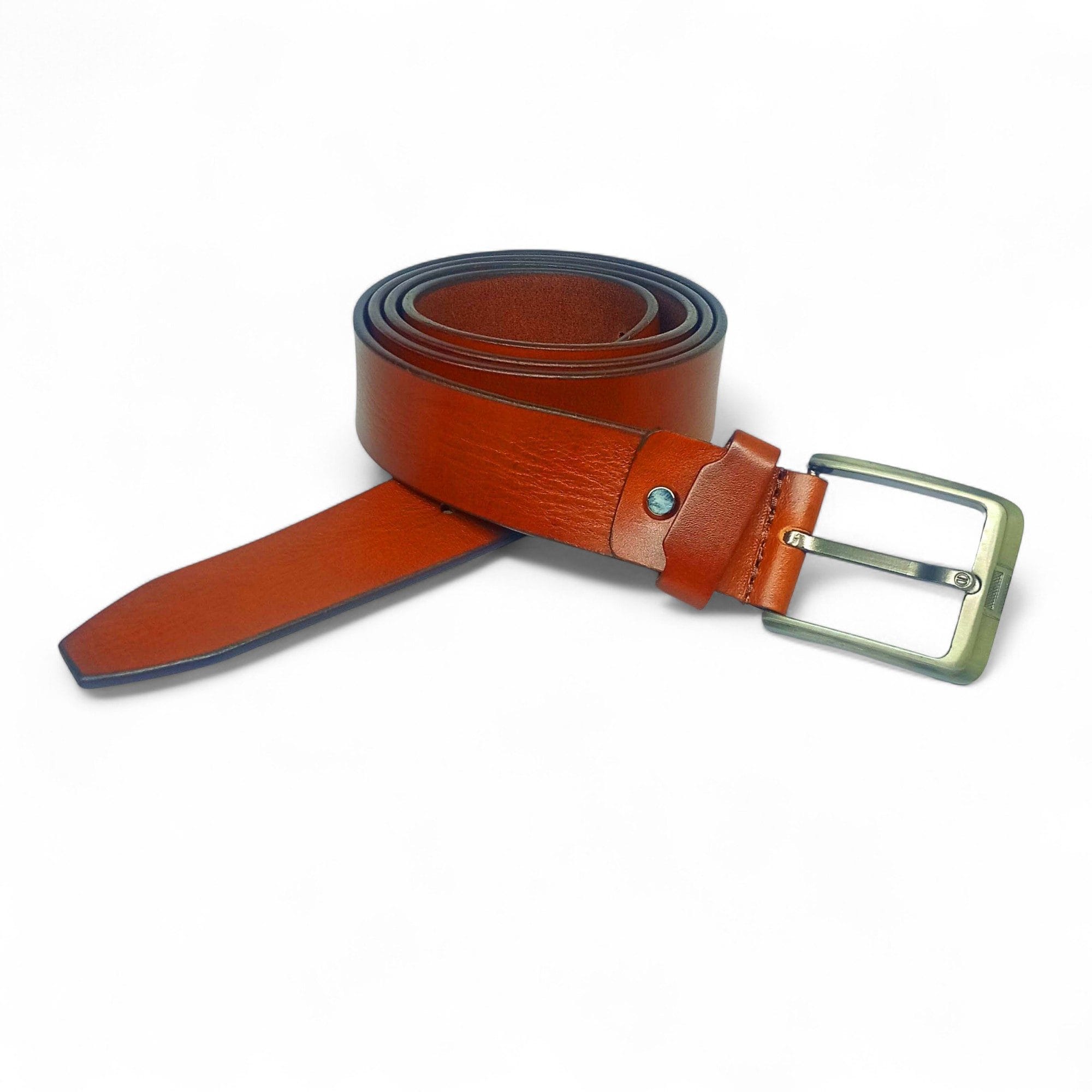 Men’s Tan Leather Belt with Antique Finish Buckle – LB-308