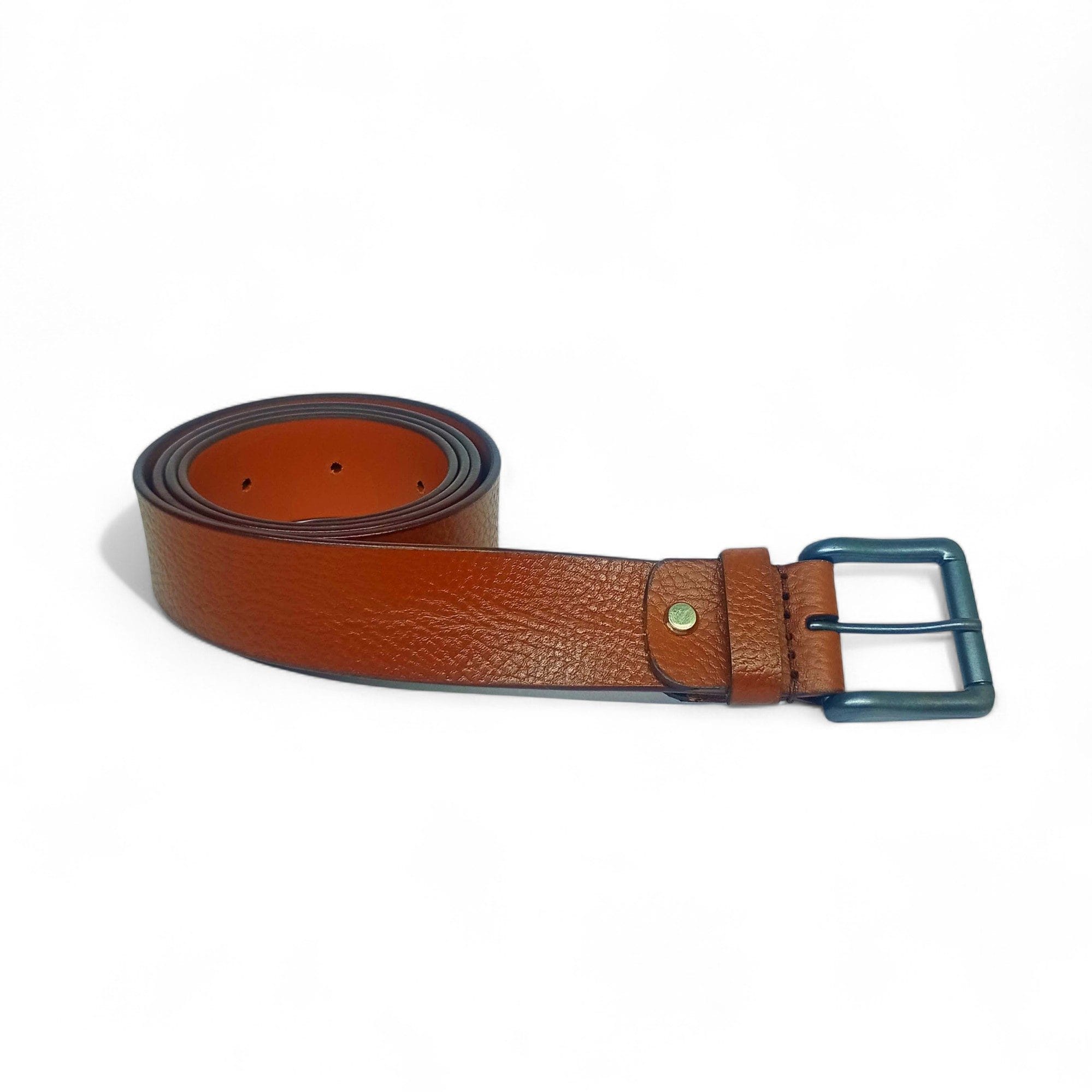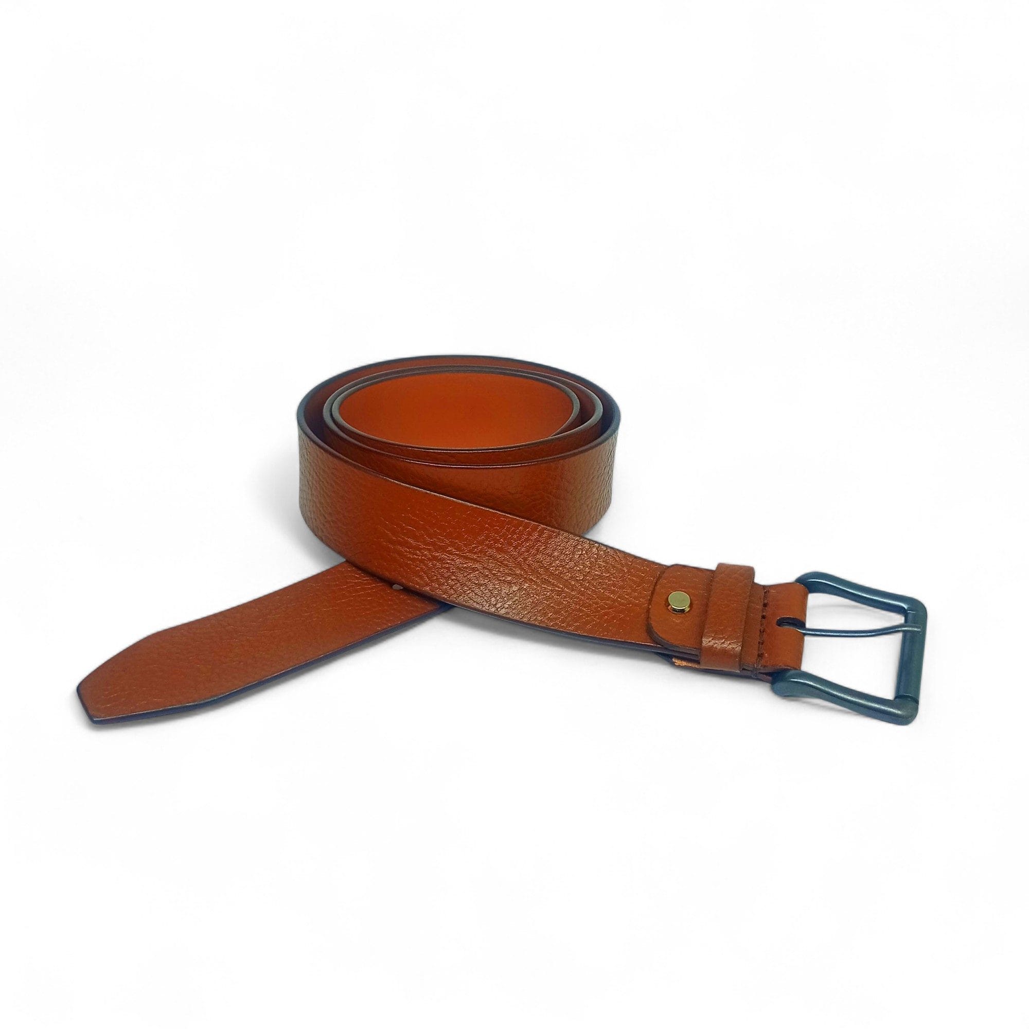 Textured Tan Leather Belt with Matte Blue Buckle – LB-309